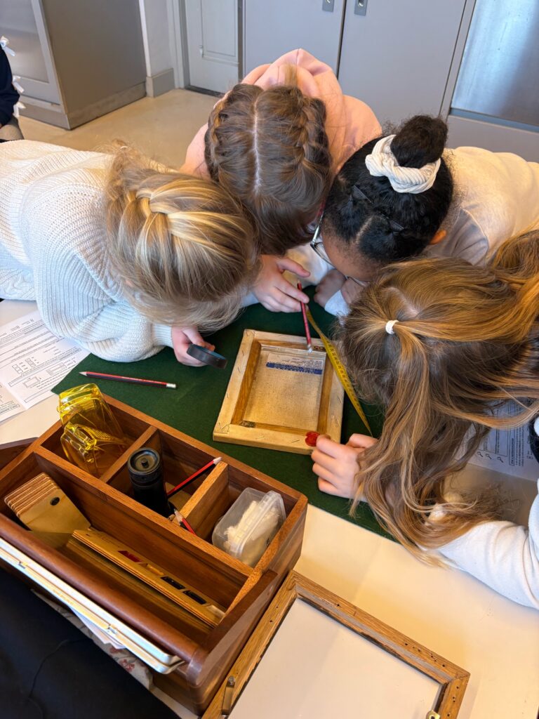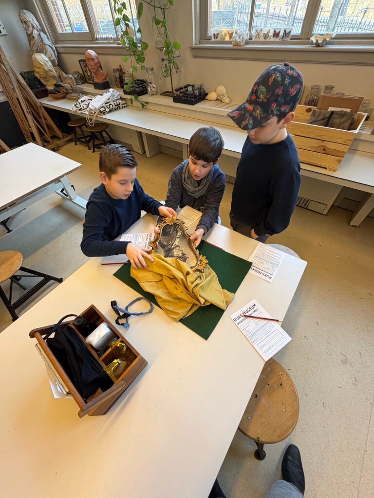 Na de rondleiding gingen we door naar het onderzoekslokaal. Daar mochten de leerlingen zelf aan de slag als kunstonderzoekers. Ze ontdekten dat schilderijen vaak uit meerdere lagen bestaan en dat je met moderne technieken kunt zien wat er onder de verf zit. Dat zorgde voor veel verbazing. Het idee dat een schilder eerst iets anders schilderde en later toch van gedachten veranderde, maakte indruk.